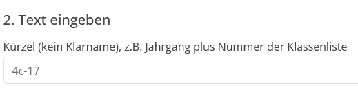 Danach gebe ich einen Schülernamen anonymisiert ein.